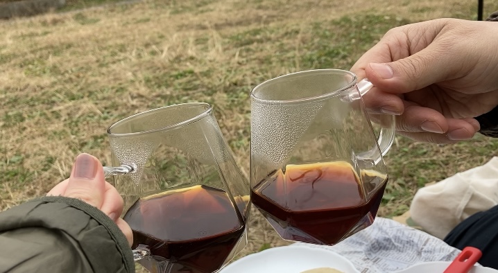 私たちはいつも、コーヒー飲みながら、お菓子食べながら、好きな音楽を流して、他愛もないお話しをして何時間もレジャーシートの上で過ごします。